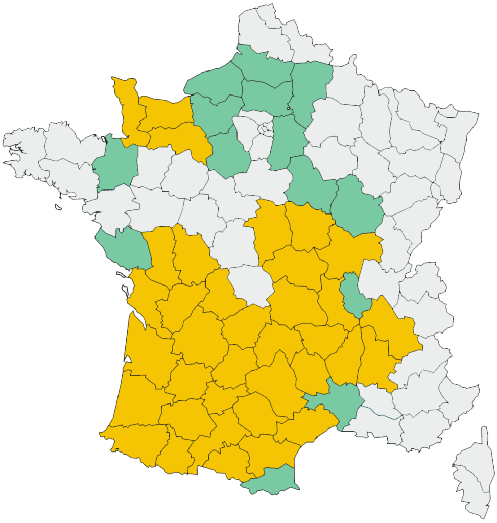 L’association est actuellement implantée dans 50 départements présents sur cette carte.